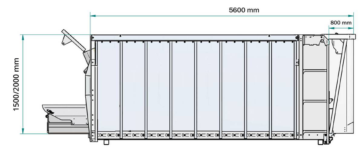 • zadnja stena in stranske stene višine 1500 mm, brez dvignjene sprednje stene