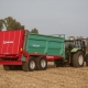 Standardna trosilna naprava: štirje pokončni trosilni valji s privijačenimi HARDOX® noži, hidravlična zaporno-dozirna vrata pred trosilno napravo in hidravlični zaščitni pokrov trosilne naprave na zaščitnem pokrovu, širina raztrosa do 12 m.